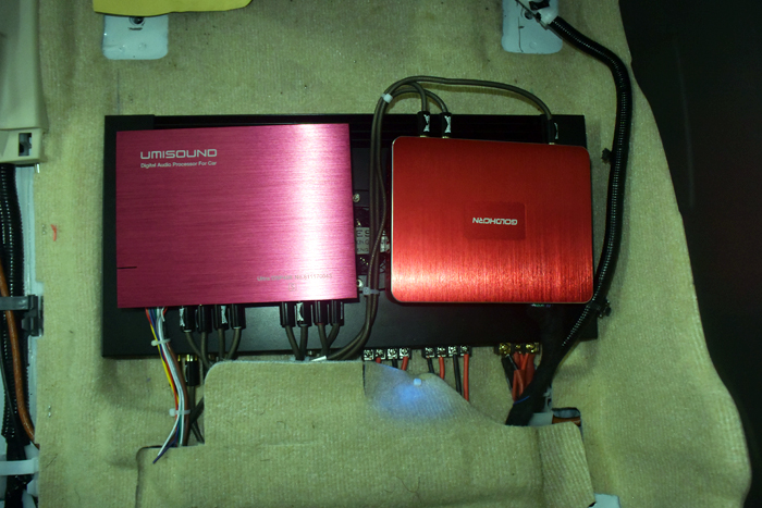 两台功放和处理器分别安装在正负驾驶座位下。