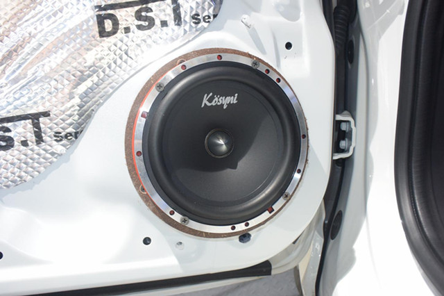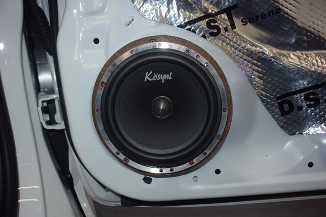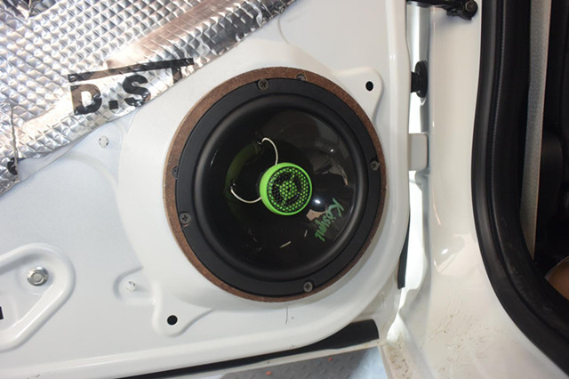 本田锋范的原车门板铁皮结构单薄,隔音用料也十分简单。因此重庆三正的改装技师使用DST隔音材料对原车门板做双层隔音。这样既降低了车厢内的噪声,同时也为汽车的声场喇叭创造了一个良好的工作环境。隔音完成后,前门歌诗尼KS168G两分频喇叭原车位安装,歌诗尼喇叭声音干净,通透,层次分明。音色更充满华丽美感,因此广受发烧友的喜爱。