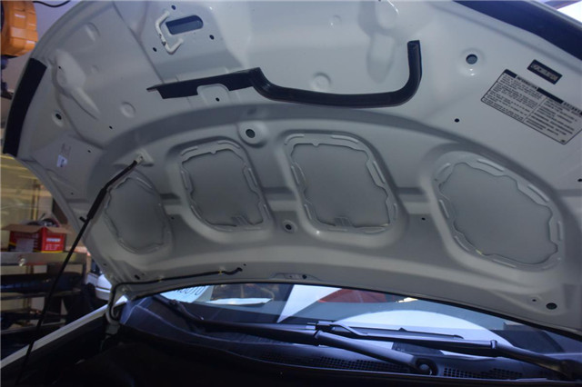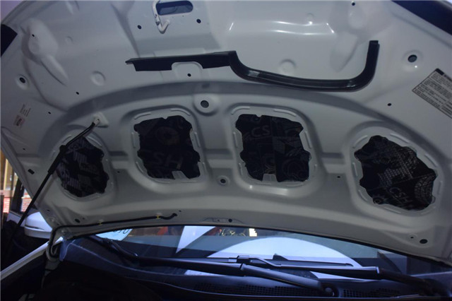 引擎盖隔音,先在钣金上贴CSH银卫盾减震胶止振,再贴一层STP引擎卫士,既降低了发动机的噪音,又同时隔离由于发动机工作时产生的热量,有效保护引擎盖表面漆面,防止老化。