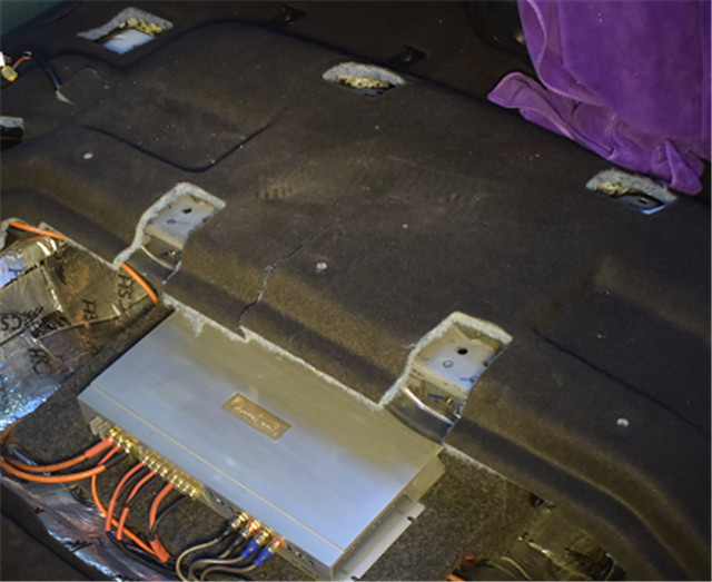 歌剧世家VA400.4四声道功放用来推动前声场和超低音。歌剧世家VA400.4四声道功放能够起到功率放大的作用能够很好的把音质推出来。JBL WS1000超薄低音倒模安装在功放旁边,这样占用的空间是最少的,保证在获得好音质的情况下又不占用太多空间。