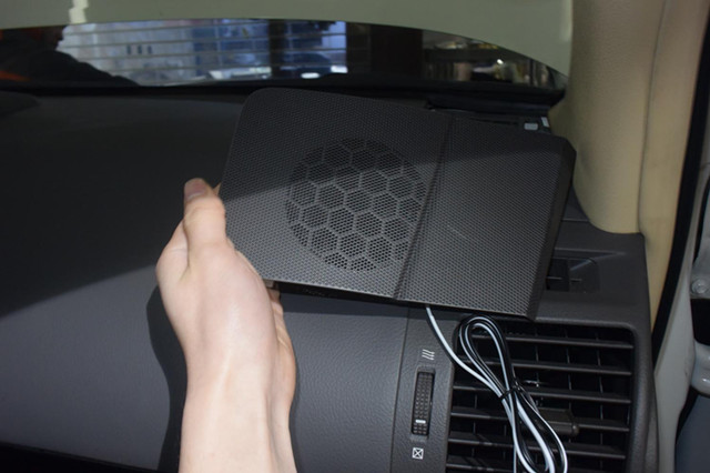 高音喇叭安装于原车高音位仪表台处。完全无损安装,安装完后看不出来改装痕迹。