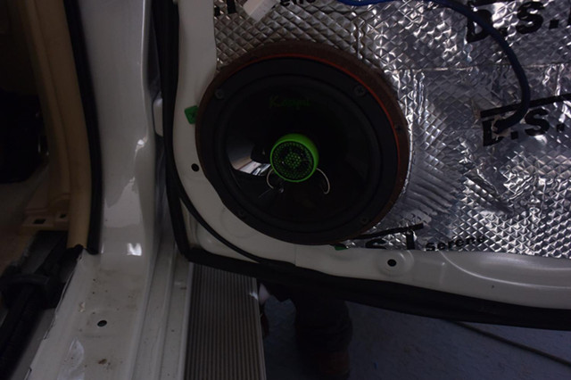 隔音完成后前声场原位安装歌诗尼KS166F两分频中低音喇叭。歌诗尼KS166F套装喇叭的综合表现也非常的出色,适合用来播放多种不同类型的音乐。