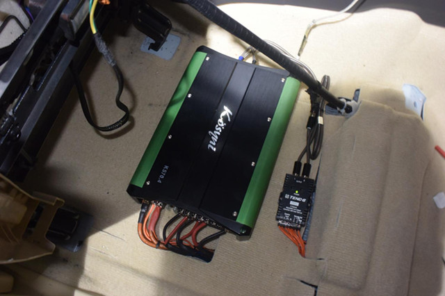 歌诗尼KS70.4四声道功放放置在主驾驶座椅下,这样既可以隐藏器材同时又节省了车内空间,并且不影响座椅的正常移动。这也是常见车型的功放安放位置。