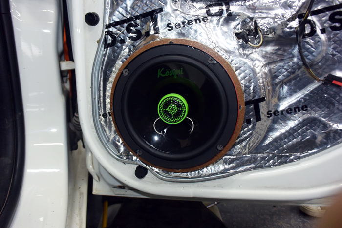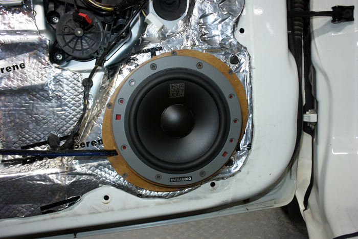 做好隔音之后,使用木垫圈做喇叭垫进行安装。