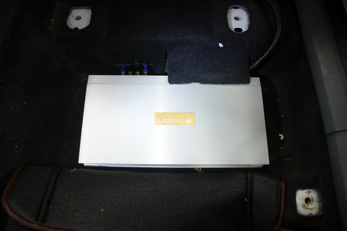 歌剧世家VA400.4功放安装在副驾驶座位下。
