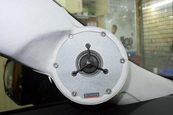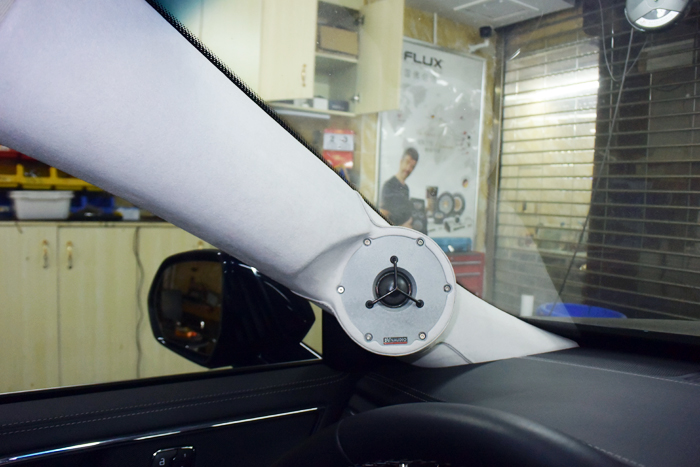 前声场丹拿高音A柱倒模安装。