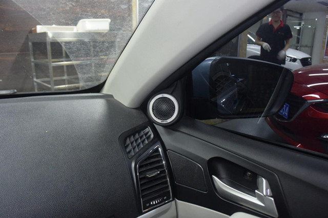 汽车行驶的噪声会对音响的品质产生非常大的影响,为了降低这种影响重庆三正的改装技师使用隔音材料对汽车的门板做了双层的隔音处理。在隔音的基础上改装技师又将汽车的前声场喇叭替换成了丹麦丹拿40周年ESOTAN 236两分频套装喇叭,它的灵敏性高、稳定性好,播放出来的音乐保真效果也非常的理想,可以将音乐完整的展现出来。