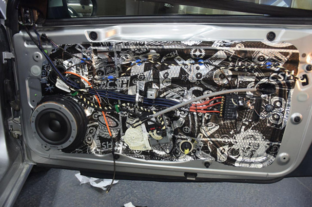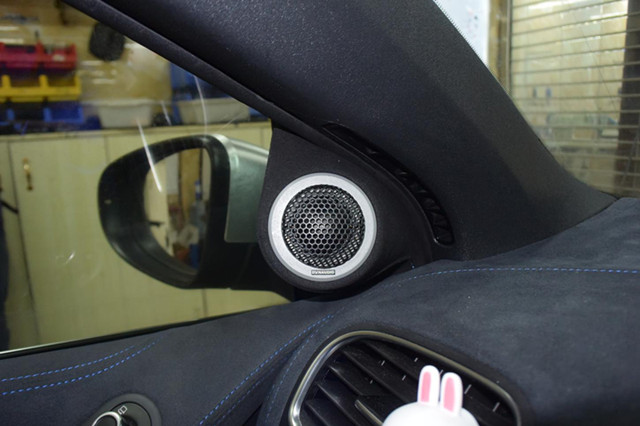 四门的隔音是汽车音响的基础。四门隔音不仅可以减少来自于门板震动而对音质产生的影响,而且双层四门隔音还对音质的提升有帮助。门板隔音完成后,前声场原位安装丹拿232喇叭。