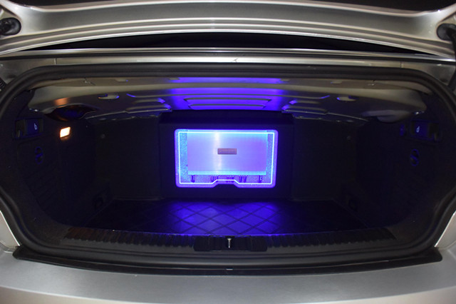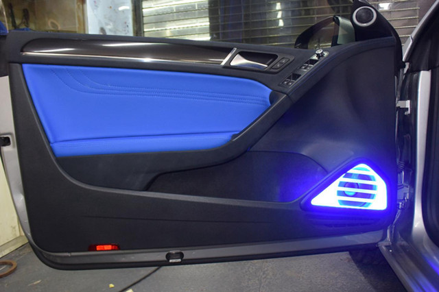 门板复原后,在喇叭位上加上LED灯光加以装饰,令整个视觉效果变得更加高档、大方。