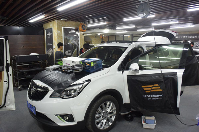 别克昂科威其外观的设计简洁大方,线条分明,从而使得汽车的运动气息十分浓厚,而汽车的内室乘坐空间良好,驾驶起来操控性也十分的良好。但的别克昂科威原车仅用了4个普通的声场喇叭,原车的音响系统既没有功放的推动同时也没有超低音单元的渲染。所以原车的音响系统播放出来的音乐稳定性差、听音效果不大理想。为了能够提升音响的品质,车主来到重庆三正汽车影音对汽车做了音响的升级工作。