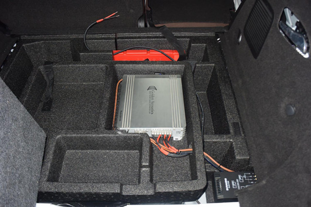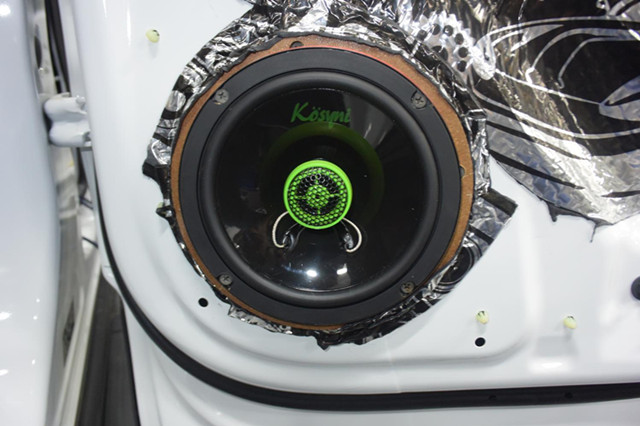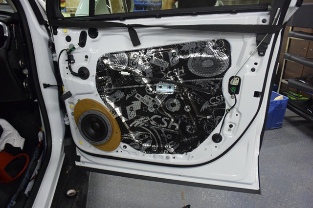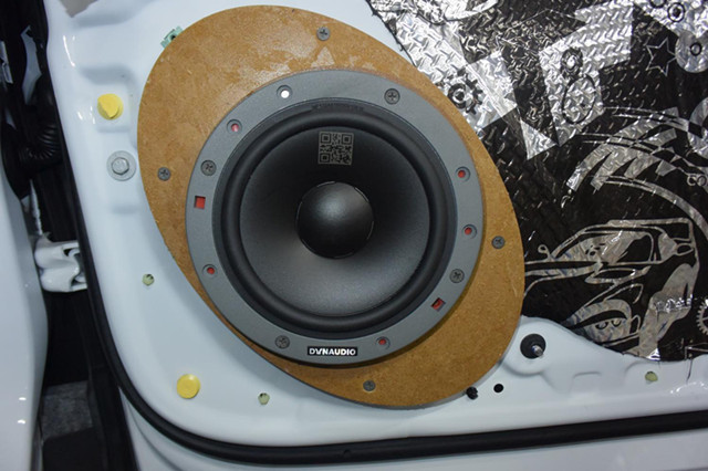 门板使用CSH银卫盾做双层隔音,可以有效提升车门钣金的强度,塑造良好的箱体结构,为音响系统提供优越的安装环境,发挥更加优美的音乐。隔音完成后,前声场原位安装丹拿232喇叭。