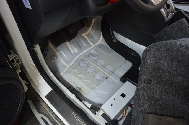 拆掉正副驾驶地毯后,先将地板钣金表面清洁干净。