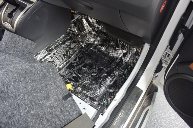 首先贴上一层CSH小炸弹减震,加强钣金厚度,减少共振。