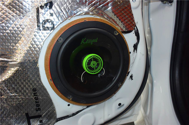 隔音完成以后前声场摩雷玛仕舞的安装,摩雷玛仕舞拥有纯净细腻的高音表现,圆润的中频效果非常适合聆听Hi-Fi人声歌曲,玛仕舞的中低频富有质感而且厚度感十足,同时对音乐原声,音乐节奏等都可以清晰地表现,失真度很低,是喇叭升级的首选。