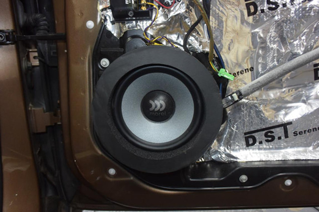 当然为了让音响发挥更好的效果,门板隔音工程是必不可少的,门板通过双层DST隔音、减振材料对汽车的钣金进行减振和密封处理,改善喇叭安装环境的缺陷,能够还原汽车音响的声压和音质效果。