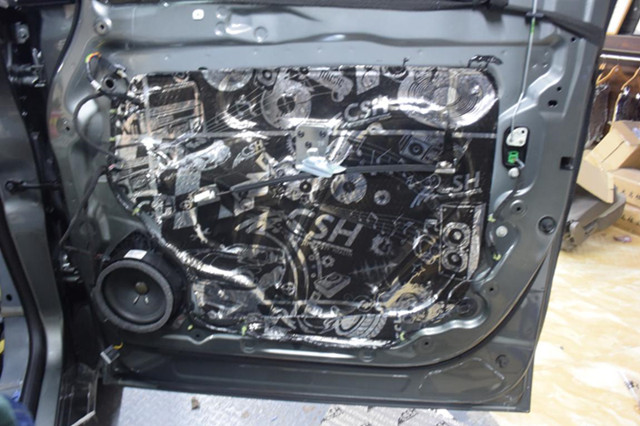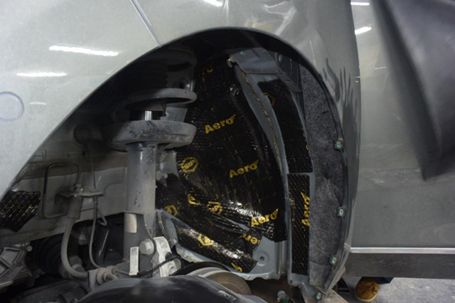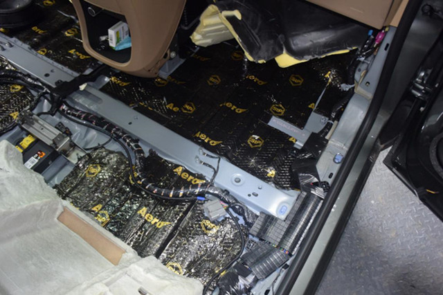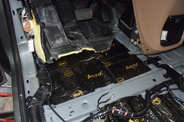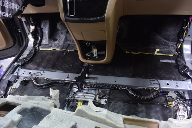 重庆三正的隔音技师对正负驾驶位进行隔音工程,三正技师采用STP航空炸弹止震作为第一层隔音,进一步加固车内的钣金,大幅减少低频噪音。