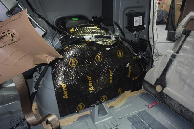 第二层三正技师使用STP航空吸音隔热棉吸收剩余噪音,让车主安静之余更享冬暖夏凉。